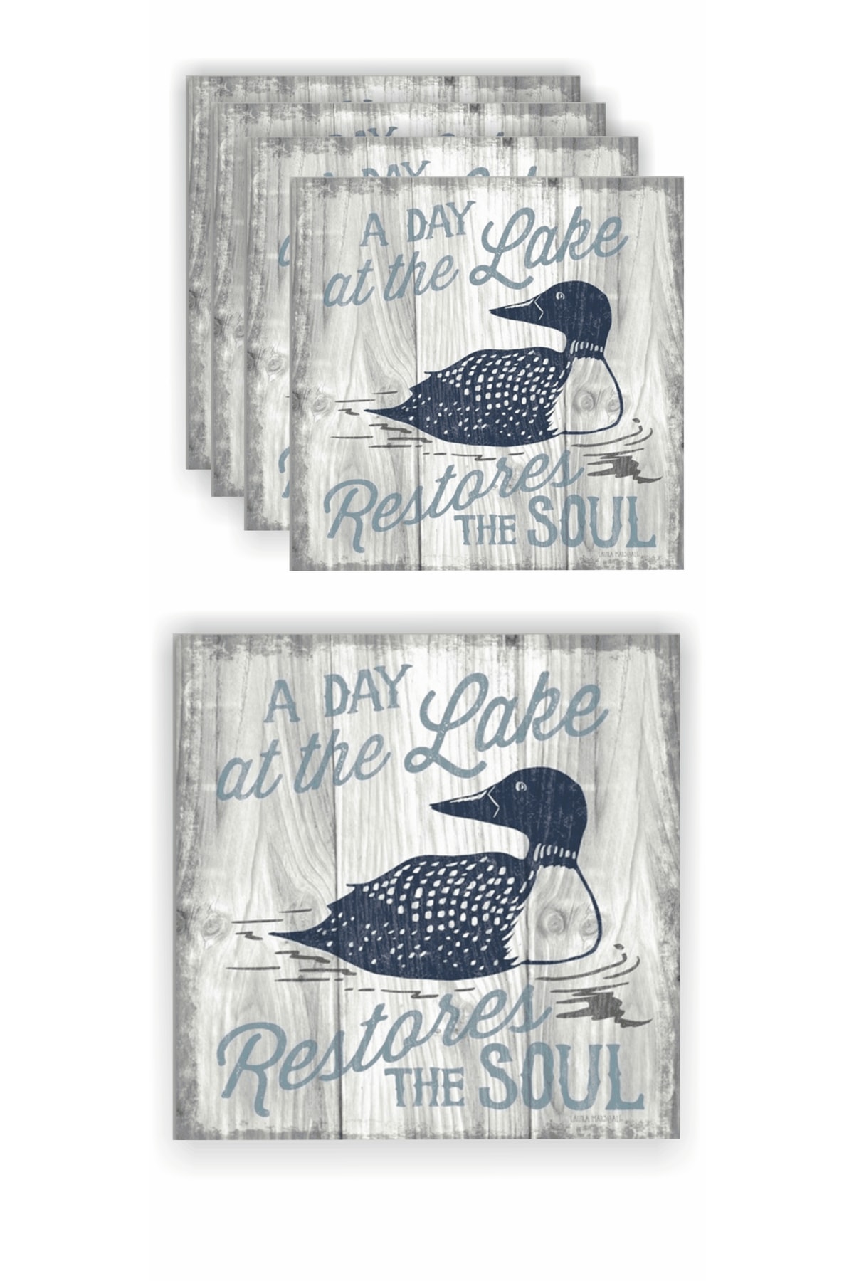 4 Adet Taş Bardak Altlığı – Göl Ve Ördek Tasarımlı