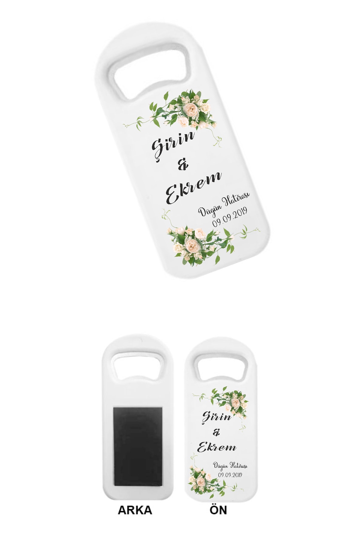 Ürünümüz 45x100mm boyutlarında sert plastik malzemeden üretilmiş olup açacak kısmı metaldir.; Hem şişe açacağı hem de buzdolabı süsü olarak kullanılabilir.; Söz,nişan,nikah,düğün,babyshower,dogum günü,mevlüd,yeni doğan etkinliği gibi günlerde kalıcı ve kullanışlı olacaktır ;