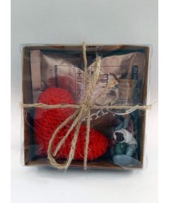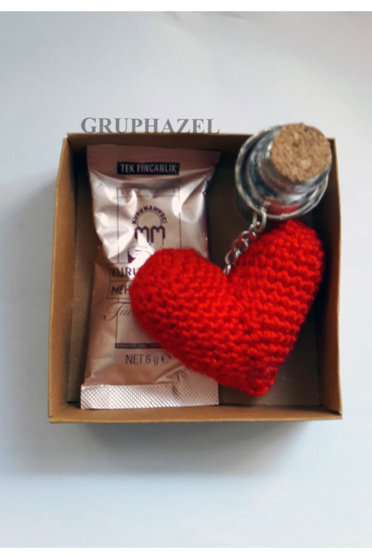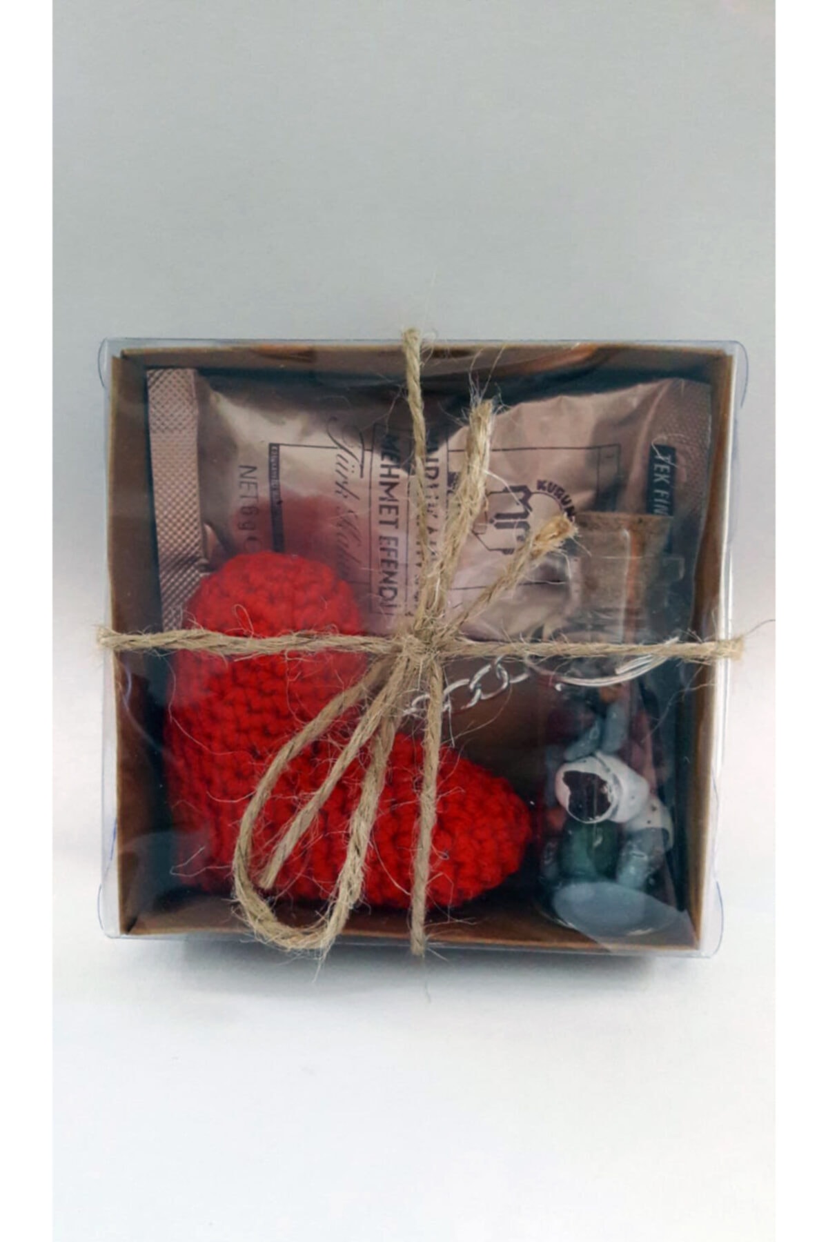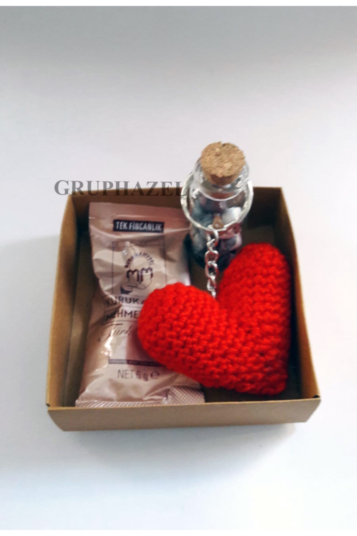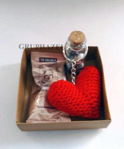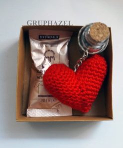 Hediyelik Amigurumi Kalp Anahtarlık ve Çakıl Taşı Çikolata Konsept ; Paket İçeriğimiz: ; Özel El işlemesi Amigurumi Kalp Anahtarlık; Taze Çakıl Taşı Çikolata ; 6 gr Türk Kahvesi ; Süslenmiş Karton Kutuda ; Not: Yüz de yüz el emeği ile yapılan Amigurumi Kalp Kadın Girişimcileri Destekleme Amaçlı üretilmiştir. ; Kutu Boyutu 9*9*3 ;