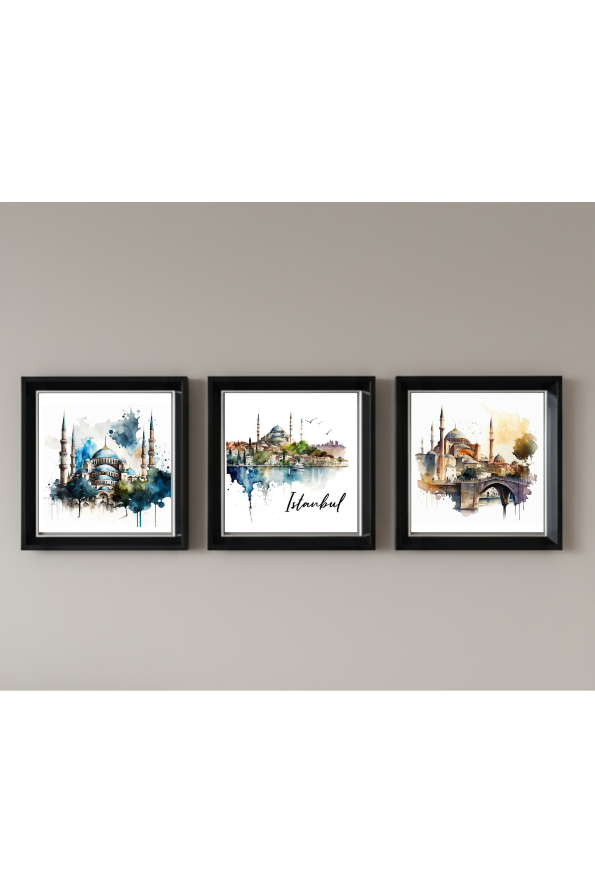 3 Lü Çerçeveli Plkesi Camlı İstanbul Temalı Tablo 20 xx20 cm