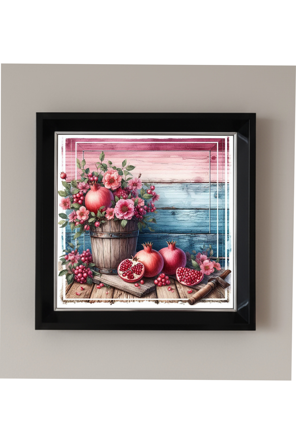 Çerçeveli Pleksi Camlı Nar ve Çiçekler Temalı Tablo 20 x 20 cm