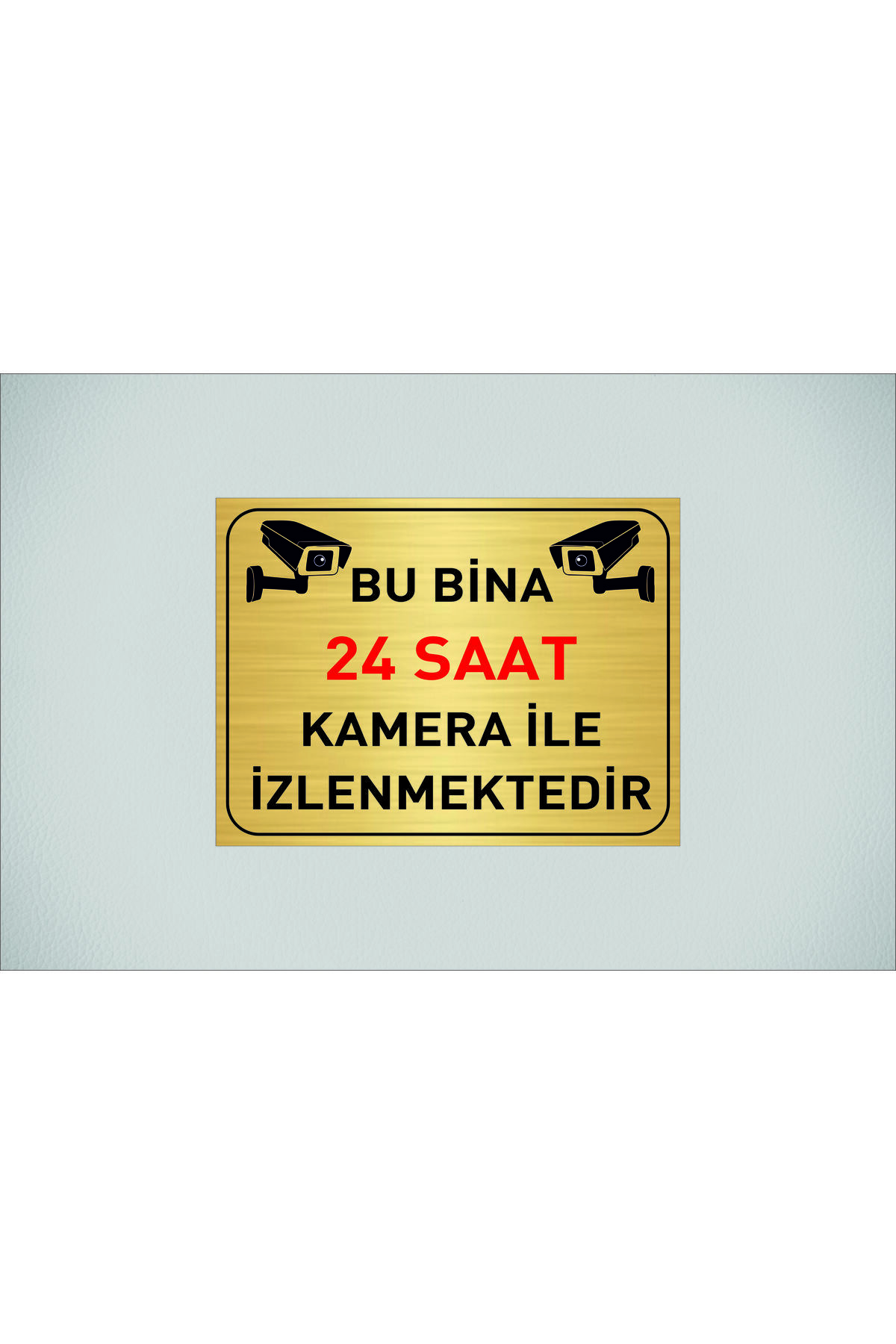 BU BİNA 24 SAAT KAMERA İLE İZLENMEKTEDİR YAZILI 20 X 15 CM GOLD METAL LEVHA – Bertek Dijital