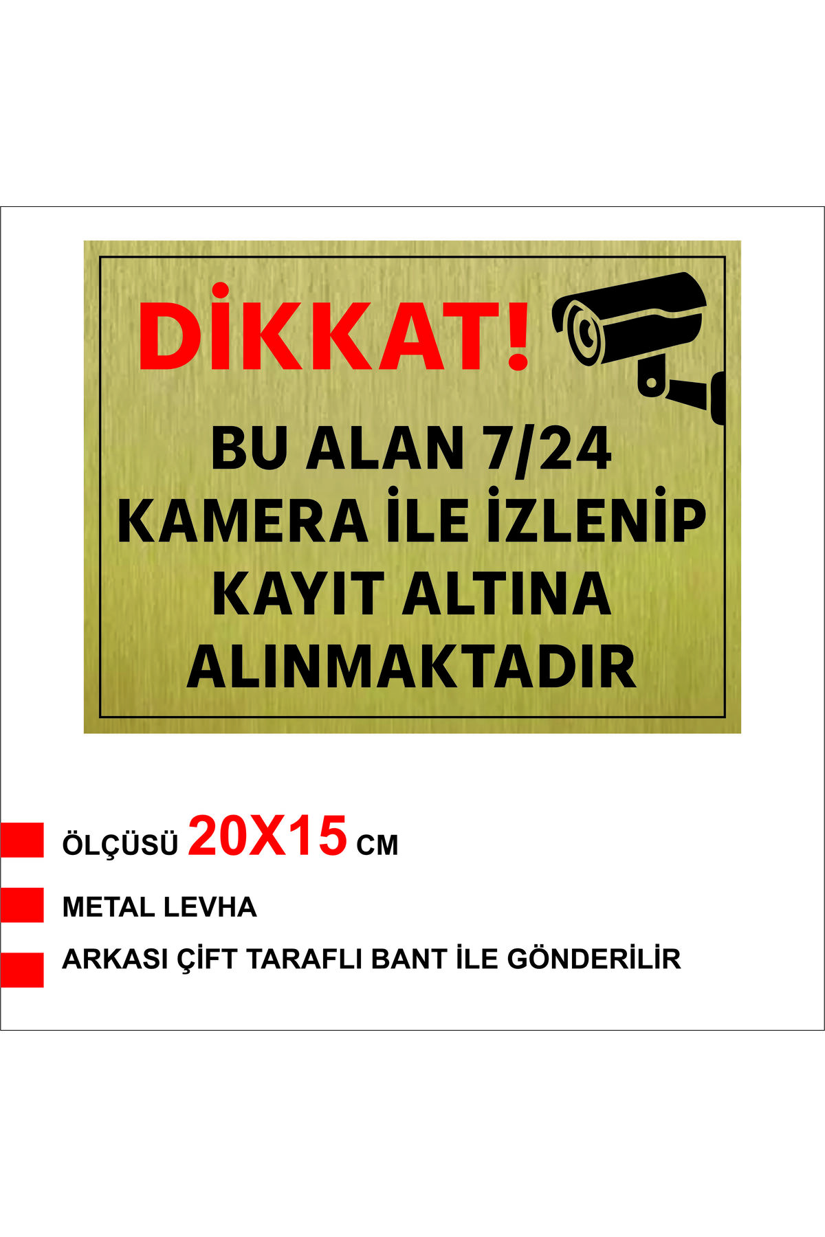 “DİKKAT BU ALAN KAMERA İLE İZLENİP KAYIT ALTINA ALINMAKTADIR YAZILI METAL LEVHA” için yorum yapan ilk kişi siz olun Yanıtı iptal et