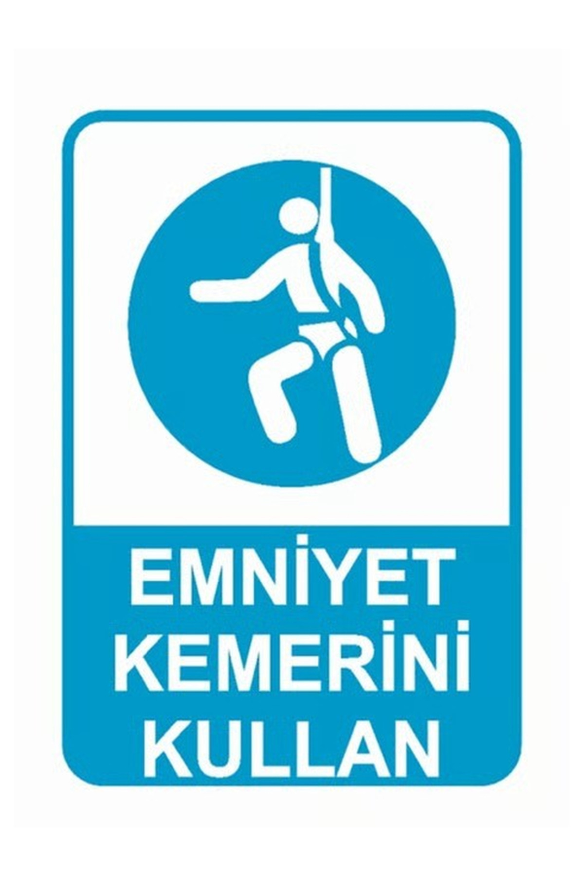 EMNİYET KEMERSİZ ÇALIŞMAK TEHLİKELİ VE YASAKTIR İŞ GÜVENLİĞİ LEVHASI 20×30 CM LAMİNASYON PVC DİR