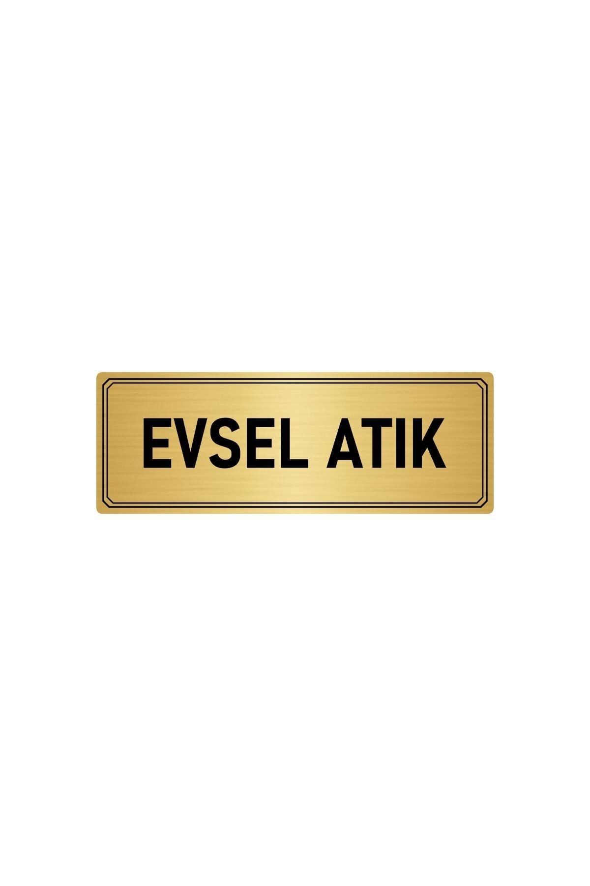 Metal Yönlendirme Levhası, Departman Kapı Isimliği Evsel Atık 5×20 Cm Altın Renk – Bertek Dijital