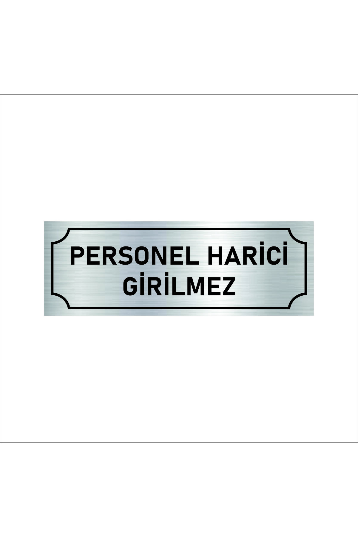 PERSONEL HARİCİ GİRİLMEZ YAZISI GÜMÜŞ METAL LEVHA 7cm X 20cm